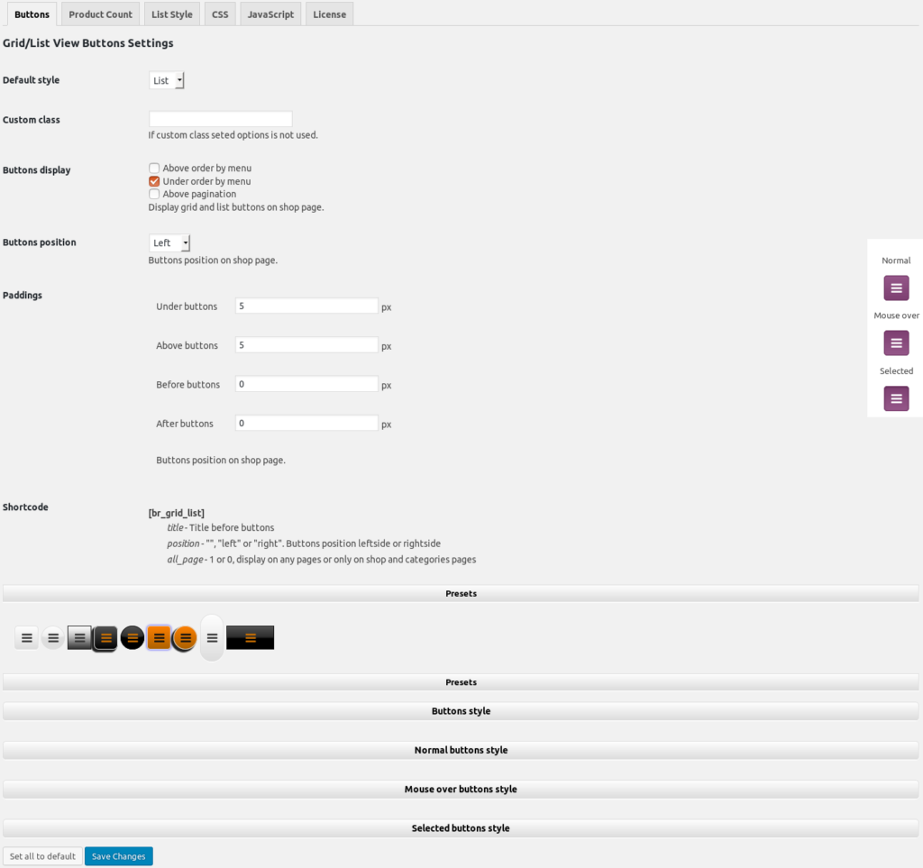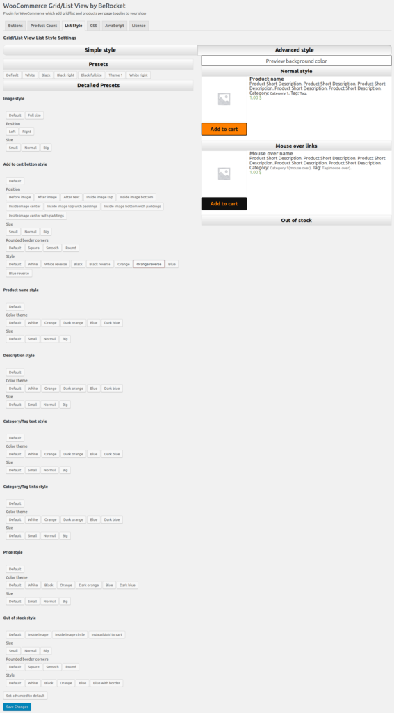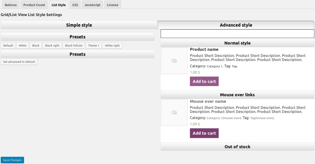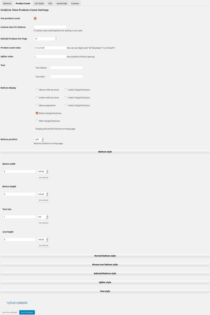 Customization is a key feature of this plugin. Users can configure the toggle buttons for switching between list and grid styles, adjust the placement of these buttons on the shop page, and also set the number of products displayed per page from the front end. The plugin supports both simple and more advanced customizations of the list view style, making it adaptable to various store layouts. While the free version covers essential toggling functions and basic customization, a paid version adds further styling controls and advanced list style options including custom CSS, enabling deeper personalization.